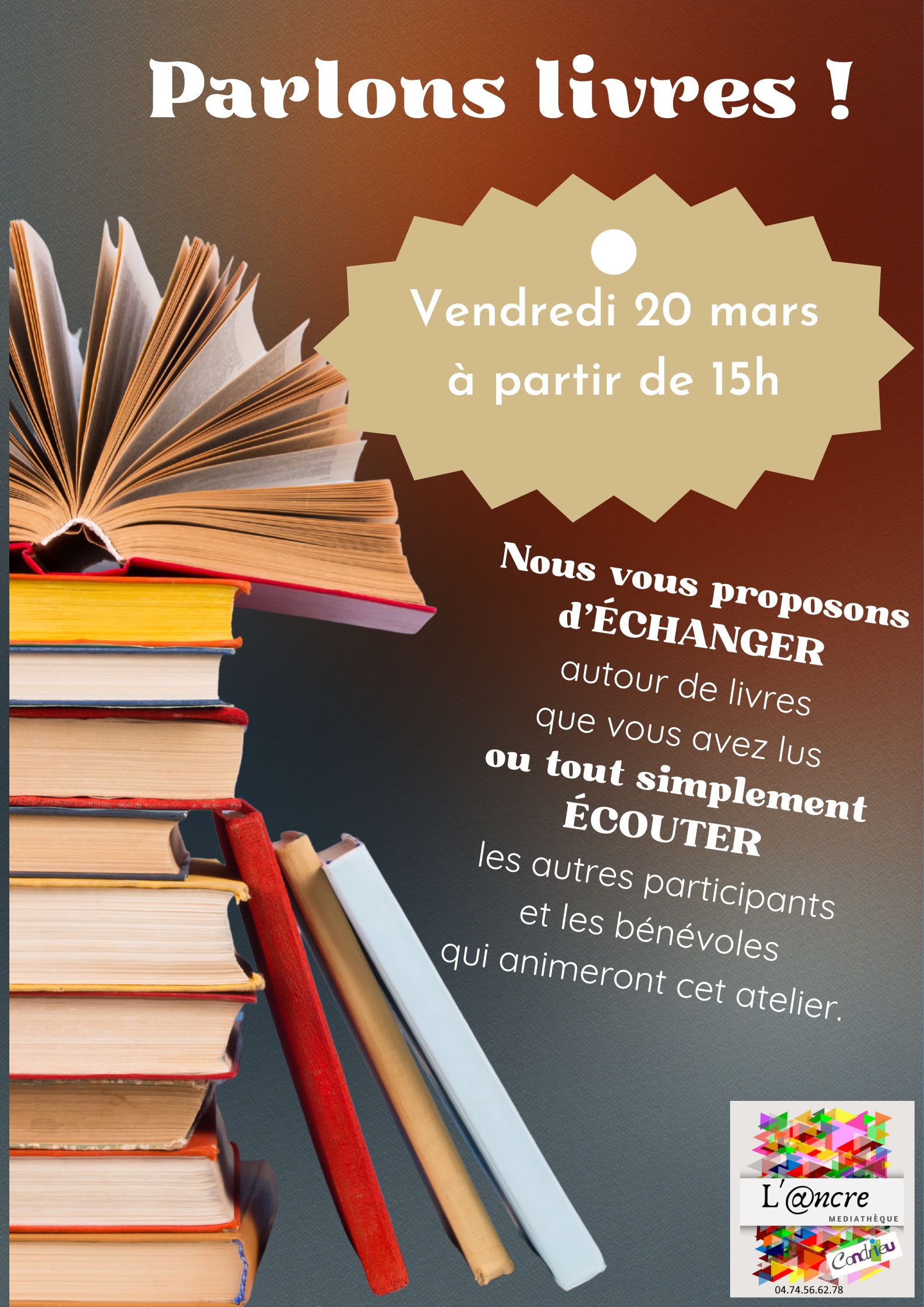 Nous vous proposons de parler de livres que vous avez lu ou tout simplement d’écouter les autres participants.