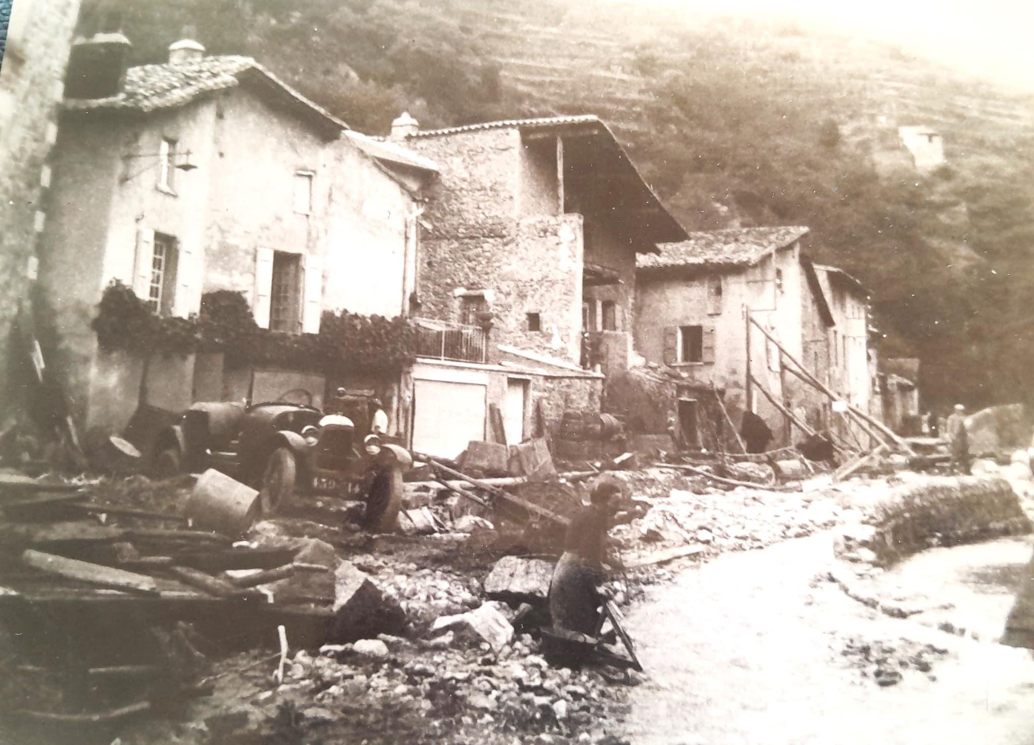 À la violence de l’inondation se joignaient les coups de bélier des arbres, des rocs emportés qui crevaient les murailles, entraînant à leur tour, voitures, mobiliers, cuves pleines, tonneaux (on venait juste de finir les vendanges), machines agricole, etc..