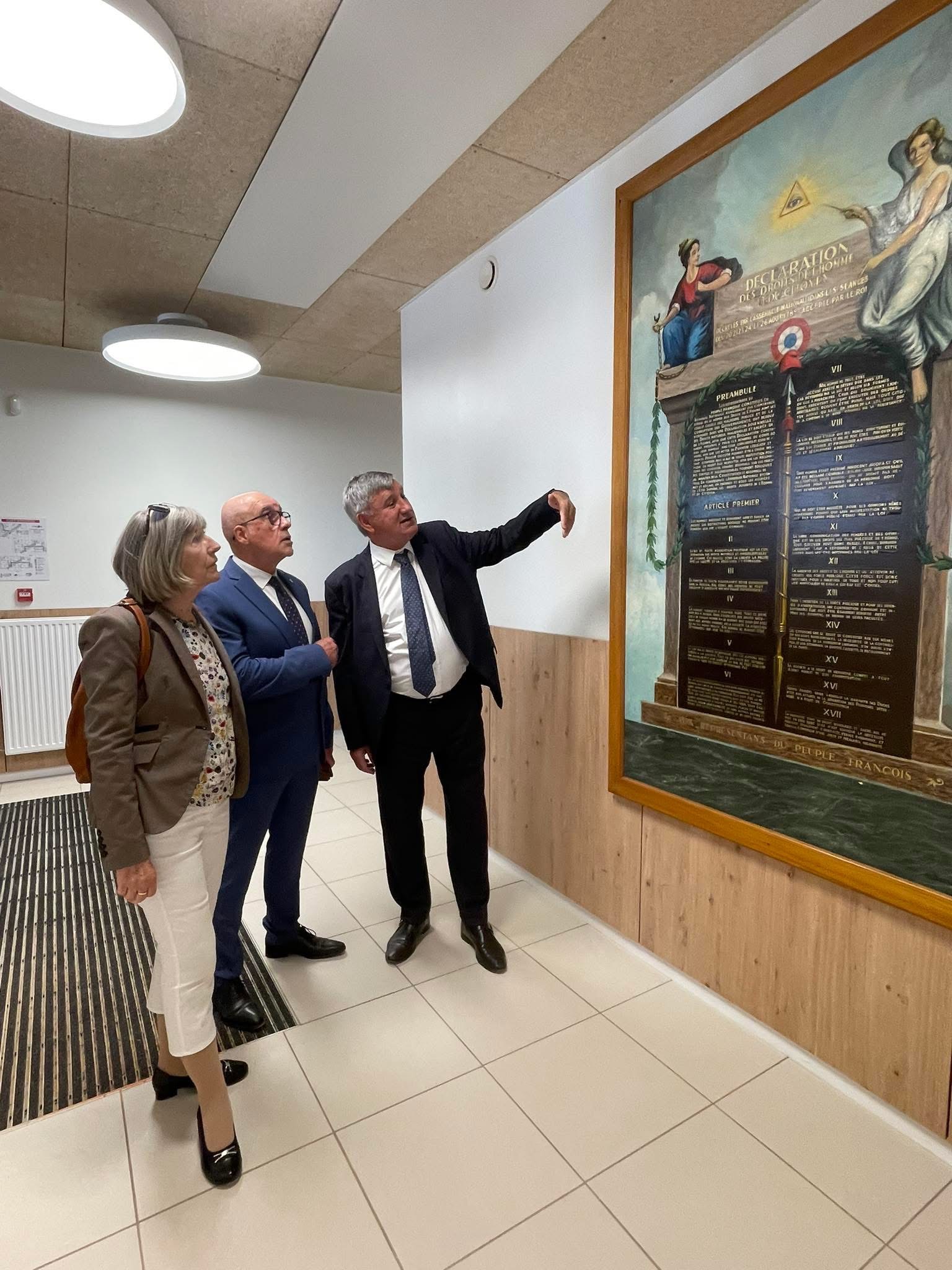 légende Photo : « La déclaration des Droits de l’homme et du citoyen » lors de l’inauguration de l’école élémentaire, présentée à Christophe Guilloteau, président du département.