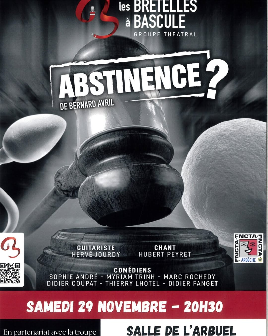 …groupe théâtral, présente, sur la scène de l’Arbuel, « Abstinence ? » de Bernard Avril.